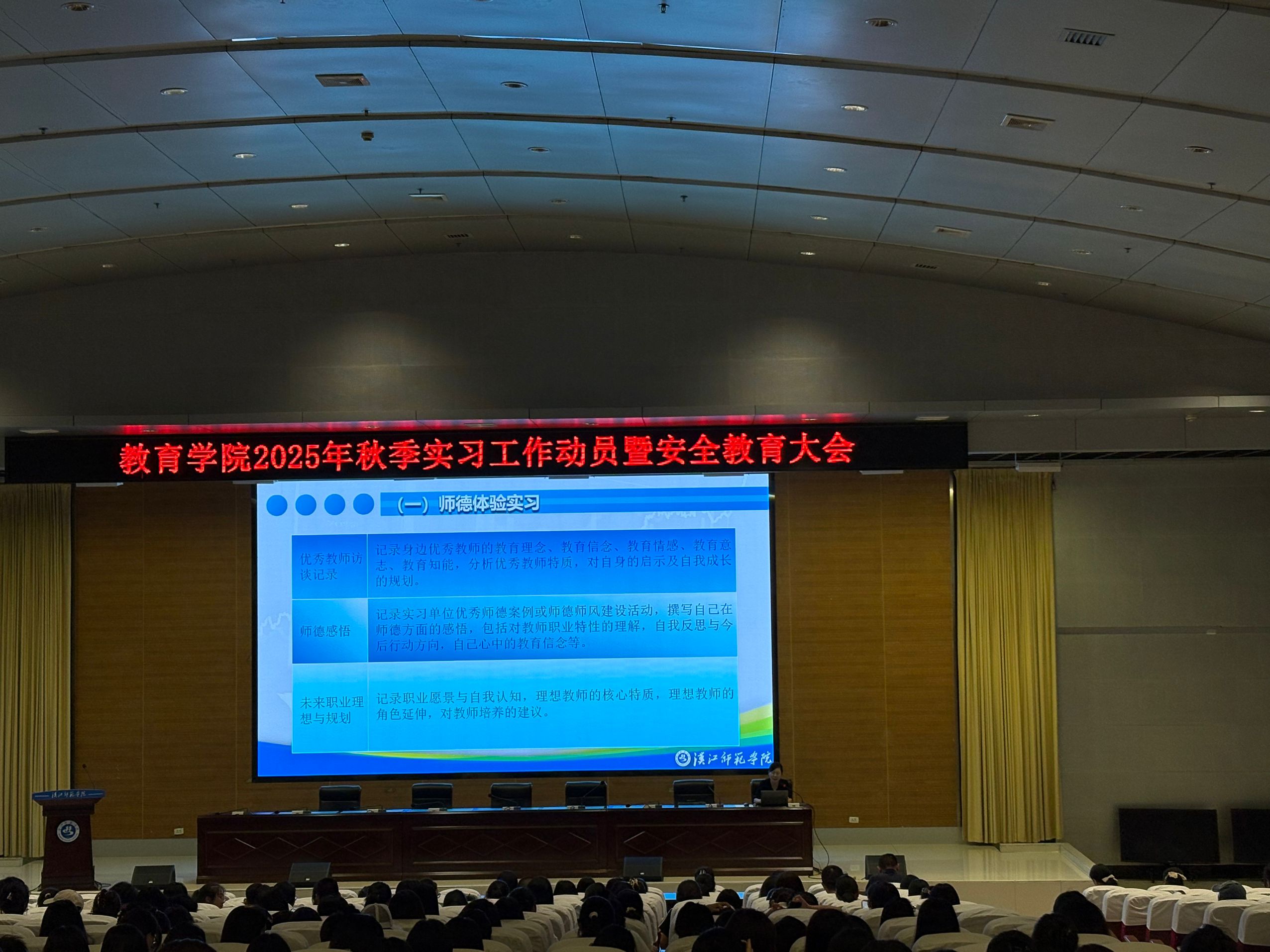 最后,小教、学前专业负责人姚炎昕老师、于娜老师分别针对本专业实习内容展开讲解。小教专业负责人姚炎昕老师结合小学教学实际,明确了备课、授课、课后辅导等具体实习任务,强调需重点掌握课堂组织与学情分析能力;学前专业负责人于娜老师则围绕幼儿一日生活照料、游戏活动设计等内容,细化了实习环节的操作要点,为学生提供了专业且具针对性的实践指引。此次动员大会通过分层部署、精准指导,不仅让学生明确了实习目标与要求,更增强了其投身实践的信心与责任感,为后续学院实习工作的有序推进奠定了坚实基础。