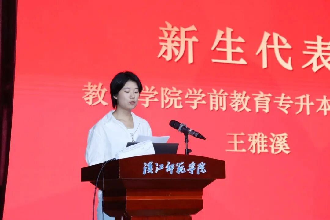 学前专升本2502班王雅溪做为专升本新生代表,感谢学院提供的深造机会,表示将珍惜学习时光,将实践经验与理论知识相结合,努力成为一名卓越的幼儿教师。