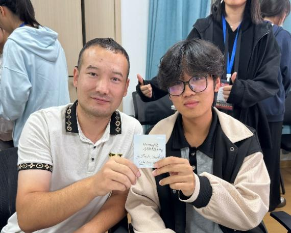 在轻松愉快的茶话会环节,师生们围坐一堂,品尝着香甜的月饼和水果,畅所欲言。维吾尔族的阿布都合曼·麦麦提同学和土家族的何陈栋同学作为学生代表发言,分享了各自民族的节日文化和习俗,表达了在校期间感受到的温暖与关怀。他们的分享引发了强烈共鸣。多样的民族风情故事不仅展现了中华文化的博大精深与丰富多彩,也促进了不同民族同学之间的深入理解和情感交融。